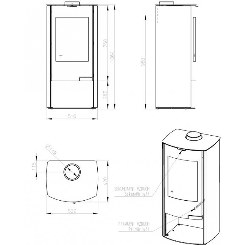 • přívod sekundárního vzduchu, díky kterému je sklo dvířek omýváno, a tak nedochází k usazování nečistot