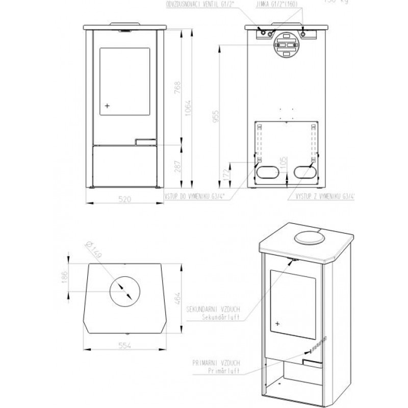Průměr kouřovodu: 150 mm