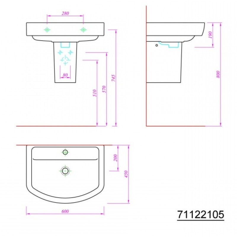 AQUALINE BASIC keramické umyvadlo 60x45cm, bílá 71122105