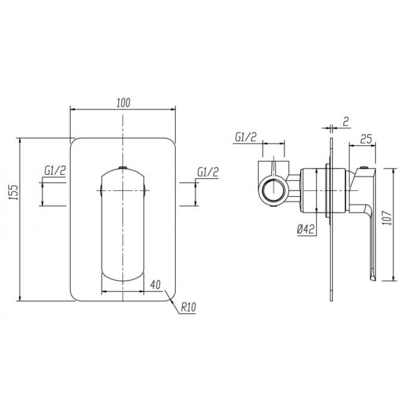 Podomítková páková baterie bez přepínače s jedním výstupem.
