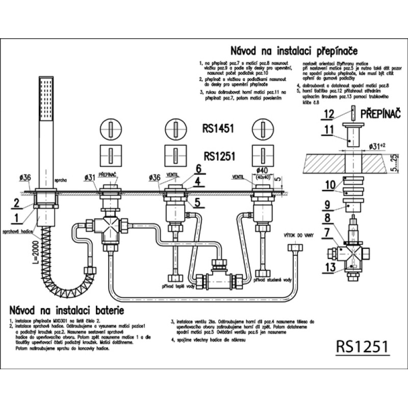 SAPHO NA OKRAJ VANY RS1251 Čtyřprvková baterie ROUND, 2 cestyBaterie je 2 cestná, bez výtokové hubice. Obsahuje ovladač teplé a studené vody a přepínač sprcha/výtoková hubice.