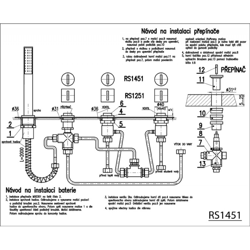 SAPHO NA OKRAJ VANY RS1451 Čtyřprvková baterie ROUND, 2 cestyBaterie je 2 cestná, bez výtokové hubice. Obsahuje ovladač teplé a studené vody a přepínač sprcha/výtoková hubice.