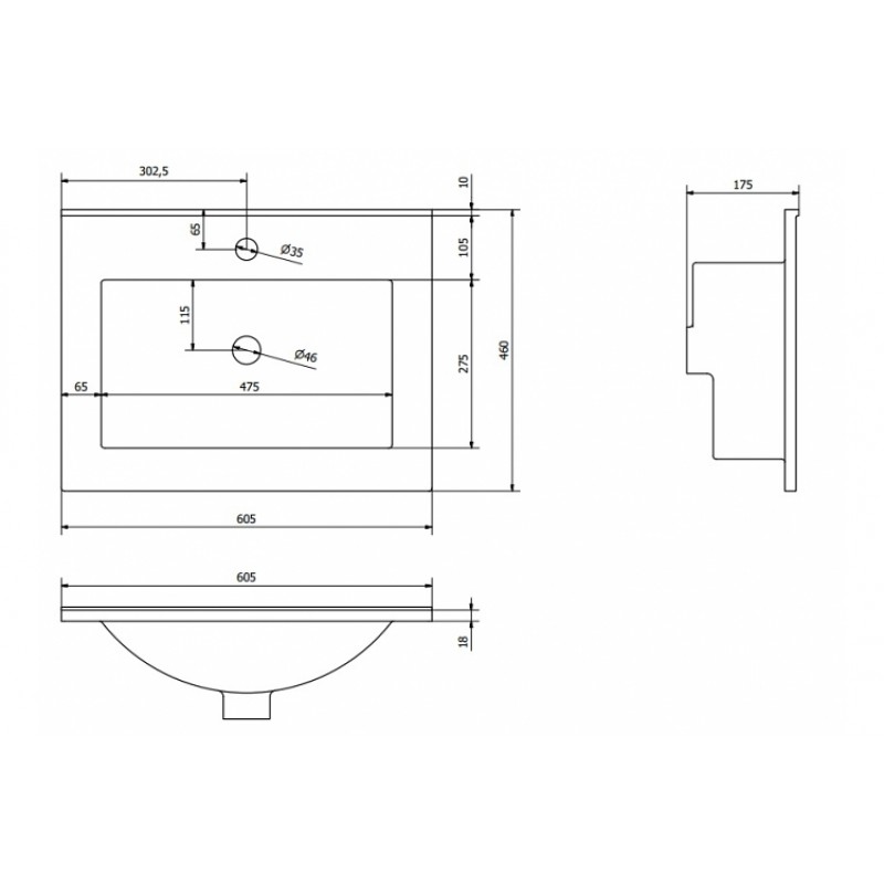 Umyvadlo je určeno pro nábytek nebo k zapuštění do desky, nelze instalovat na zeď samostatně.