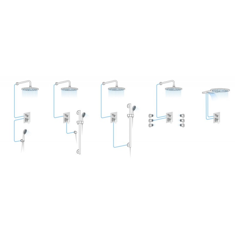 Podomítková baterie nabízí designově čisté řešení sprchového koutu. Je také doporučena do menších prostor. Její malá hloubka neomezuje pohyb osoby ve sprchovém koutu.
