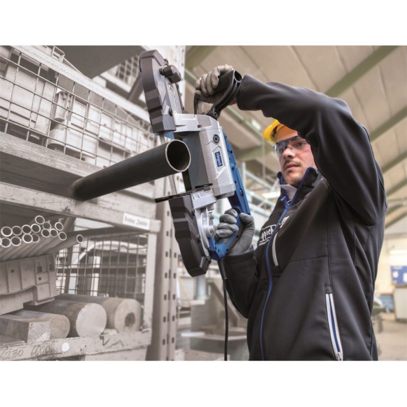 Scheppach MBS 1100 je skvělým nástrojem pro řezání kovových trubek a dalších kovových i plastových materiálů. Velkou výhodou této pily je její univerzálnost. Dá se použít jako stacionární nástroj, kdy je připevněna k podstavě nebo se dá volně používat bez podstavy, takže řezání již zamontovaných součástí nebo profilů v prostoru se stává hračkou. Díky elektronicky nastavitelné rychlosti řezání je pila vhodná na ocel, nerezovou ocel, železo, různé druhy slitin, měď, PVC, teflon apod. Pila má nastavitelný úhel řezu, nastavitelnou rukojeť, LED osvětlení a svěrák, jako součást základny. Díky své univerzálnosti je skvělým pomocníkem jak do domácích dílen, tak pro široký okruh řemeslníků. Podstava i dva pilové pásy jsou součástí dodávky.Technické parametry