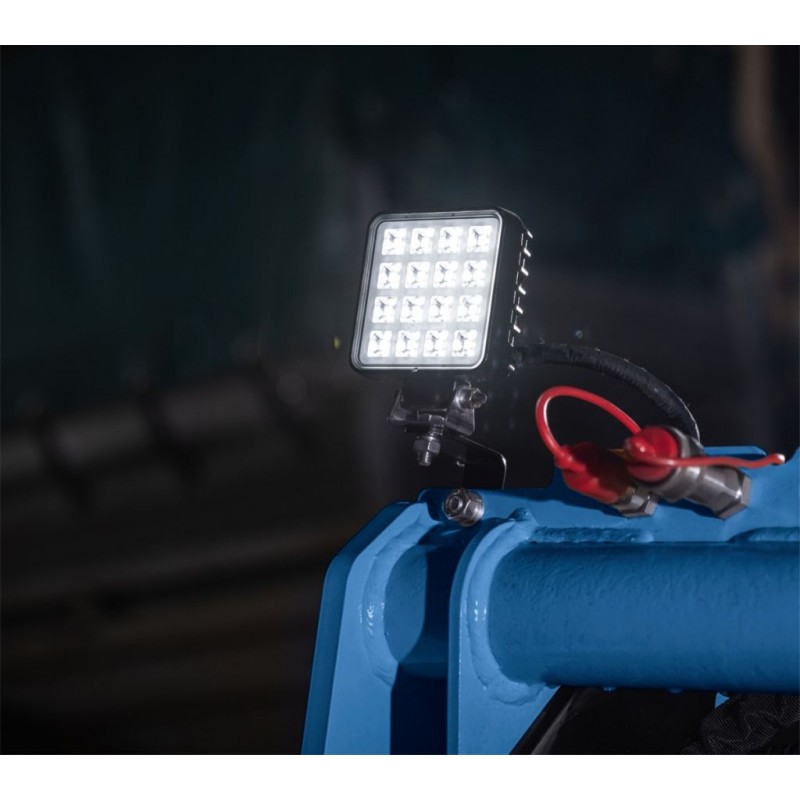 Práci zpříjemňuje ergonomická plošina se spínačem bezpečnosti, boční zábrany a také výkonné LED osvětlení pro práci za šera. Kompaktní šířka stroje 740 mm umožňuje průjezd i úzkými prostory, kde jiné stroje neprojede. Rychlost 2,3 km/h vpřed i vzad zajistí plynulý pracovní chod.