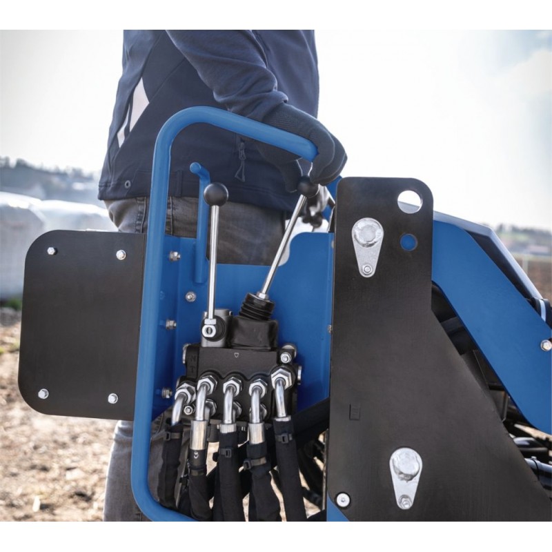 Pásový podvozek s šířkou 180 mm a samostatným ovládáním pásů zajišťuje skvělou stabilitu i v náročném terénu. Nakladač si poradí se stoupáním 25° a díky nízkému přítlaku na podklad (32 kPa) je šetrný k měkkým povrchům. Pro snadnou manipulaci je vybaven hydraulickým rychloupínáním, které umožňuje rychlou výměnu nástavců.