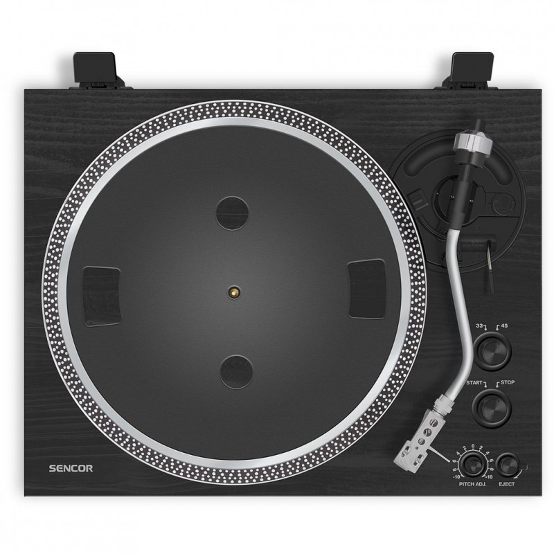 SENCOR STT 500URA gramofon s MMC 35048890STT 500URA je prémiový gramofon značky SENCOR. Tento model je osazen magnetodynamickou přenoskou značky Audiotechnica a hliníkovým talířem pro kvalitnější zvuk a pro minimalizování poškození Vašich desek. Automatické vypnutí a automatické vrácení raménka při konci desky se postará o komfort při poslechu Vaší oblíbené hudby. Rychlost otáčení desky se dá regulovat pomocí funkce "Pitch Control". V gramofonu je zabudovaný předzesilovač, díky kterému můžete propojit gramofon s reproduktory i bez potřeby dalšího zesilovače. Nechybí ani funkce nahrávání z desek do PC pomocí USB kabelu (software i kabel je součástí balení).