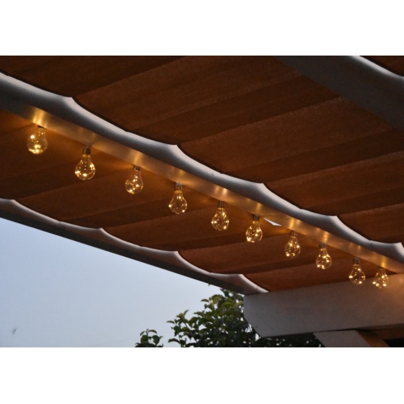 Solární osvětlení žárovky je osvětlení 10-ti žárovek s 30ti LED světýlky, které rozzáří i ten nejtemnější koutek a to za pomoci solárního panelu.Žárovky pomocí tohoto panelu převádí energii do nabíjecí baterie a v noci se světlo automaticky sepne a udělá kouzelnou atmosféru při jakékoliv