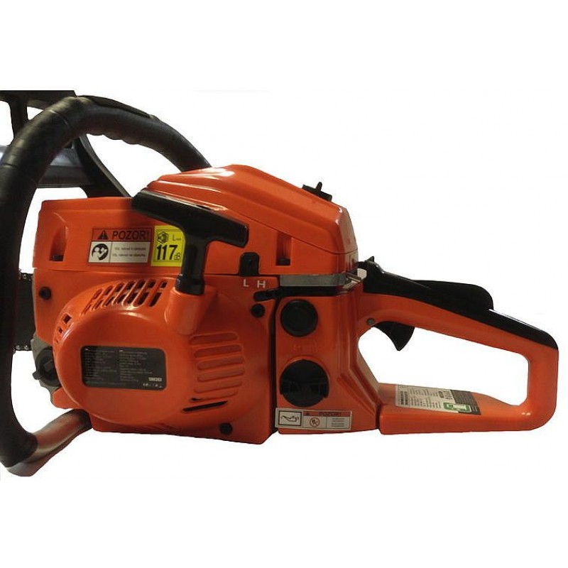 SHARKS SH 4550 Motorová pila 1,75kW SHK383Motorová pila Sharks SH 4550 slouží k základnímu pořezu dřeva. Bezproblémově si poradí s několika kubíky dřeva díky ideální délce lišty 40 cm. Pro úchop příjemné madlo s plynem a bezpečnostním vypínačem, ovládací prvky jsou koncentrovány vhodně v dosahu ruky, pila je vybavena brzdou řetězu, který také plní funkci chrániče ruky, dále robustním předním madlem, tlumiči vibrací, stop vypínačem, sytičem nebo ozubenou opěrkou. Praktické boční upínání řetězu oceníte zejména při údržbě, napínání nebo samotné výměně řetězu. Pohodlnou hmotnost oceníte stejně jako příslušenství pracovního nářadí.
