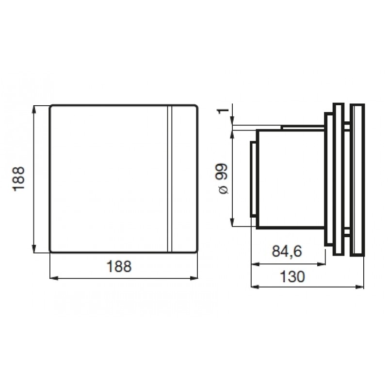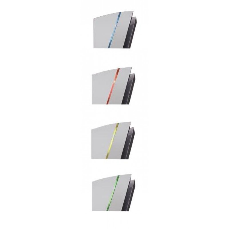 Stříbrný tichý odsávací axiální ventilátor se zpětnou klapkou,provozní kontrolkou a výměnnými barevnými proužky pro každý interiér Provedení: kuličková ložiska, tichýPrůměr napojení: 100 mm