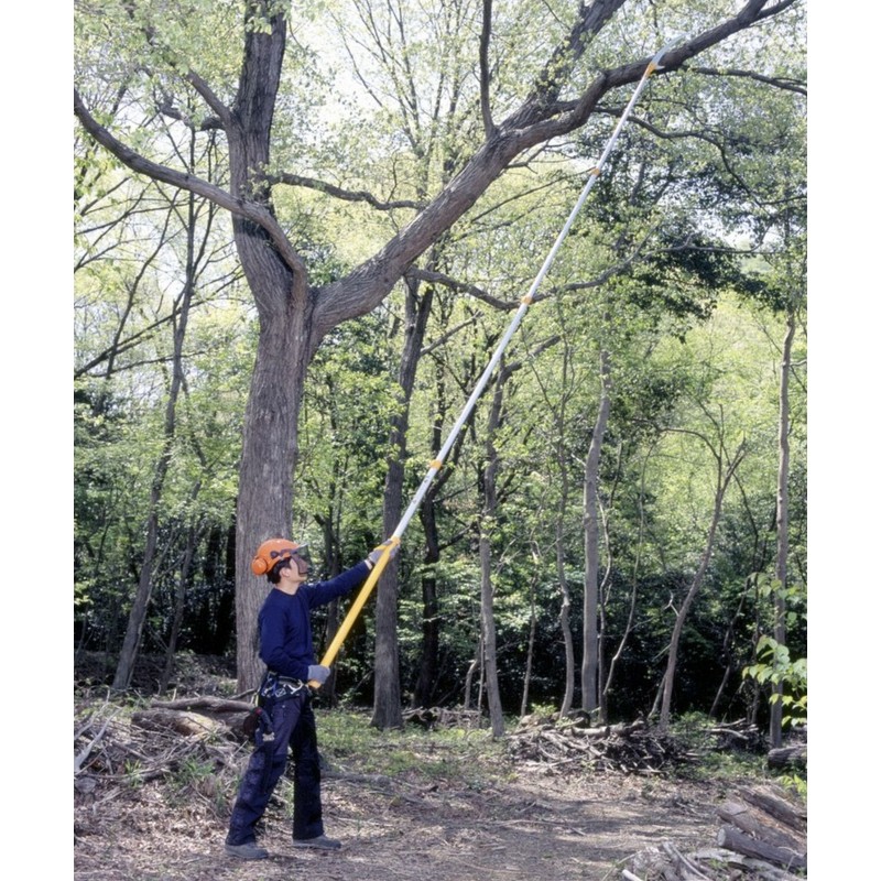 Hayate je opravdu robustní teleskopická pila určená pro profesionální arboristy. Její extrémní délka umožňuje řezat větve ve výškách až 6,5 metru bez použití žebříku. Řezná rychlost je srovnatelná s malou motorovou pilou. Díky konstrukci čepele, která řeže především v tahu, můžete pracovat efektivně a bez nadměrné únavy. Využijte lehkou, ale pevnou konstrukci hliníkového těla a nechte pilu pracovat za vás!