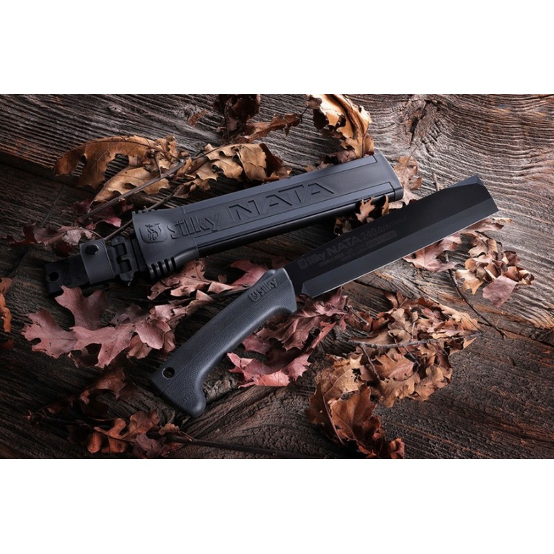 Stejně jako u všech pil z této řady je čepel sekery NATA 240 potažena speciální černou vrstvou unikátní směsi niklu a cínu zvanou Black Oxide. Díky tomuto speciálnímu procesu úpravy získává čepel hlubokou černou matnou barvu, která brání korozi a zajišťuje dlouhou životnost a výjimečný řezný výkon nejen při práci se dřevem, ale také při sekání kostí. Tmavý, světlo neodrážející povrch je ideální pro situace, kdy je potřeba zůstat nenápadný.