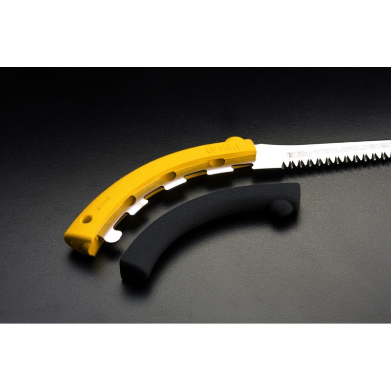 Pohodlný úchop za všech podmínek zajišťuje revolverová rukojeť typu Genki, která je tvořena pouze dvěma pryžovými částmi dokonale obepínajícími ocelové tělo pily. Díky tomu na ní nenajdete žádné šrouby ani matice a při údržbě není potřeba žádné nářadí.