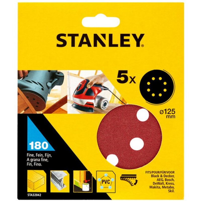 STANLEY STA32042-XJ Brusné papíry pro excentrickou brusku 125mm, P180, 5ks
