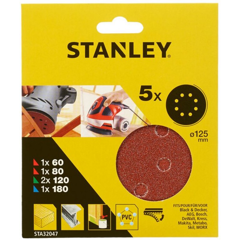 STANLEY STA32047-XJ Brusné papíry pro excentrickou brusku 125mm, P60, P80, 2x P120, P180