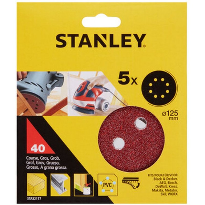 STANLEY STA32177-XJ Brusné papíry pro excentrickou brusku 125mm, P40, 5ks