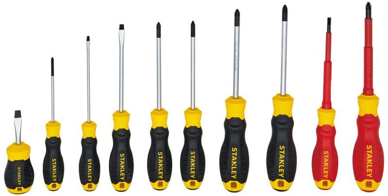- Izolované šroubováky s certifikací VDE a GS – bezpečné pro práci pod napětím až 1.000 V.