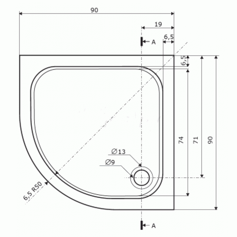 Čtvrtkruhová sprchová vanička PELEUS se vyrábí v provedení s hladkým povrchem.