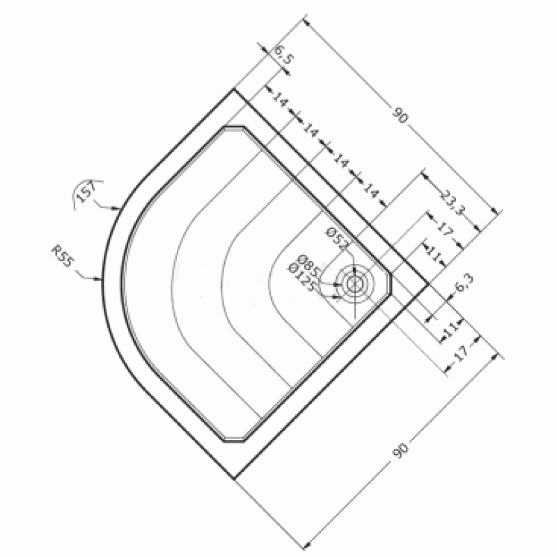 Čtvrtkruhová sprchová vanička SANO 90 se vyrábí v provedení s protiskluzem. Sprchová vanička SANO 90 je vhodná v kombinaci se sprchovými zástěnami s radiusem R55.