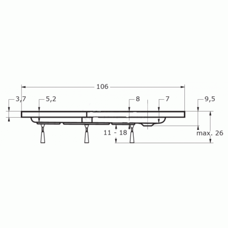 Sprchovou vaničku SANO 90 je možné doplnit kovovými samonosnými nohami, nebo plastovými nožičkami (nejsou samonosné - nutná podezdívka).