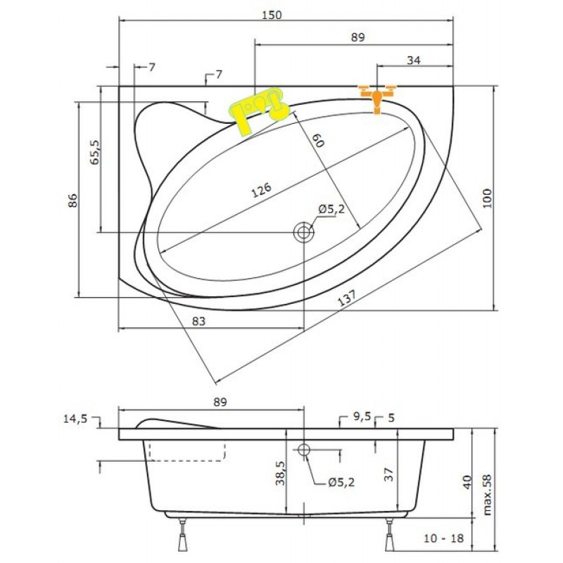 Hydromasážní systém je osazen 4-mi maxitryskami a 2-mi minitryskami. Tyto vytvářejí příjemný proud vody obohacený vzduchem. Moderní regulační a ovládací prvky zaručují velmi jednoduché a pohodlné ovládání. Spuštění a vypnutí se provádí pneumatickým spínačem, který je umístěn na horním okraji vany. Vzduchová regulace obohacuje vodní masáž vzduchem, který mění účinky masáže. Intenzitu masáže lze měnit otevíráním nebo zavíráním maxitrysek - max. 2 ks současně.