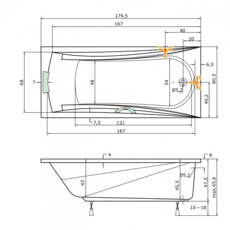 TEIKO Vana Etna obdélníková 180 x 80 cm - HTP systém ECO HYDRO V212180N04T02211Rozměry: 180 x 80 x 45 cm