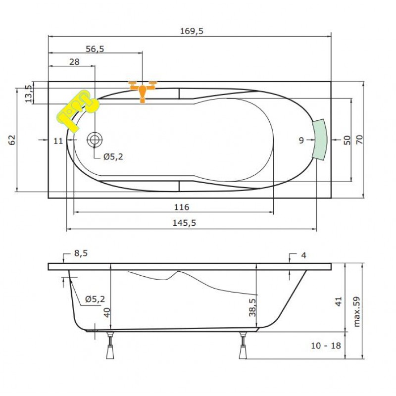 TEIKO Vana Ibiza obdélníková 170 x 70 cm - HTP systém ECO HYDRO V212170N04T01211Rozměry: 170 x 70 x 39 cm