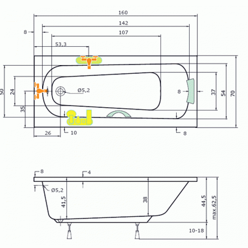 TEIKO Vana Klasik obdélníková 160 x 70 cm, akrylátová, bílá V113160N04T01001Rozměry: 160 x 70 x 41 cm