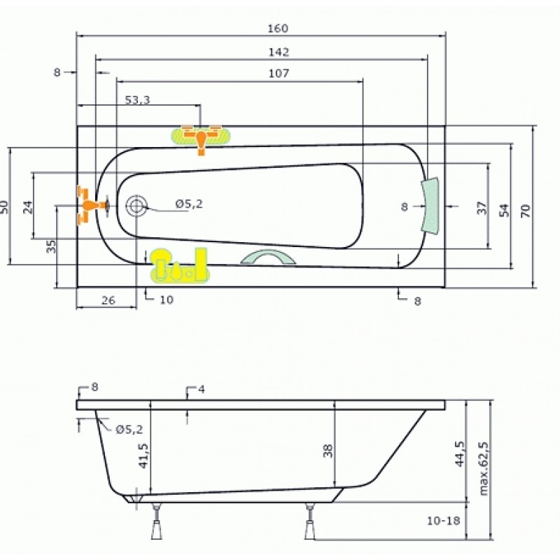 TEIKO Vana Klasik obdélníková 160 x 70 cm - HTP systém ECO HYDRO V213160N04T01211Rozměry: 160 x 70 x 41 cm