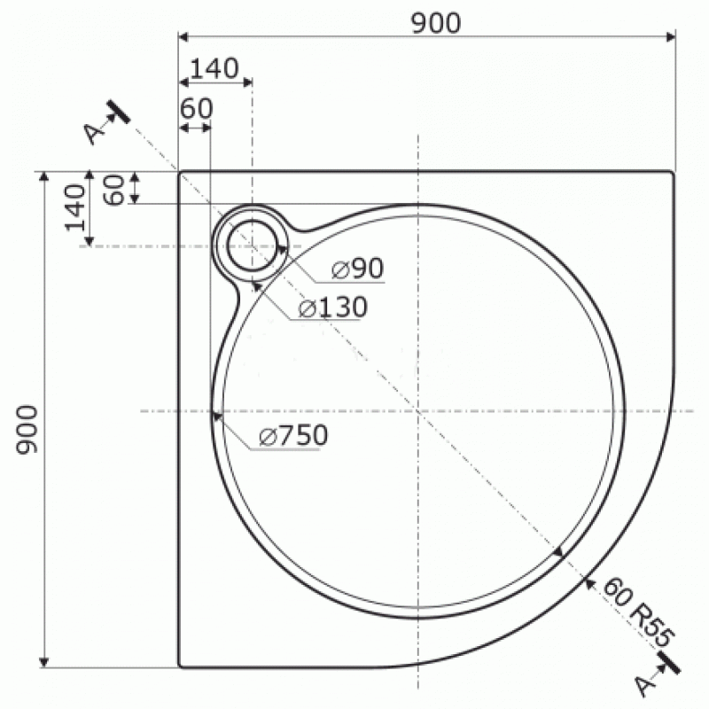 Čtvrtkruhová sprchová vanička VESTA se vyrábí ve třech rozměrech v provedení s hladkým povrchem.