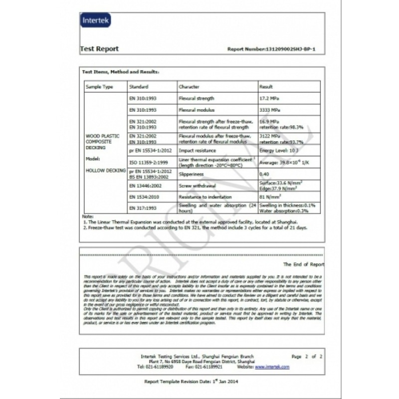 - Díky protiskluzové tvarové úpravě povrchu prkna jsou WPC prkna méně kluzká než dřevěná.
