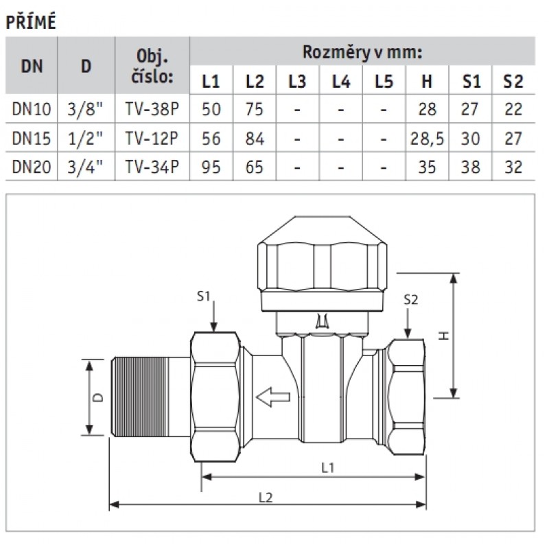 Termostatický ventil 3/4" přímý M 30 x 1,5 s přednastavením, TV-34P