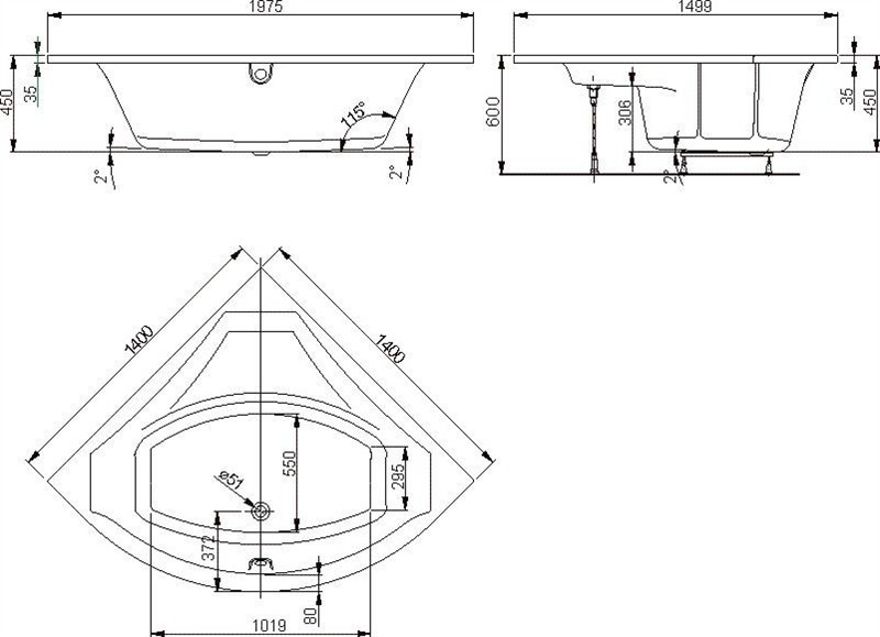 Vagnerplast VERONELA rohová vana 1400x1400x450 mmProvedení: rohová