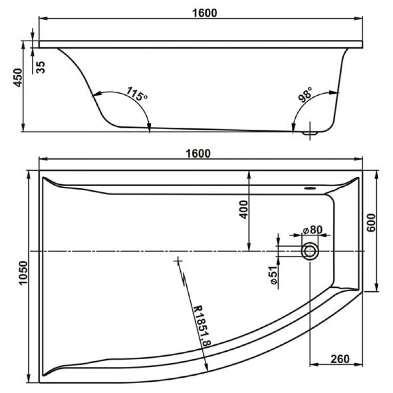 Vagnerplast VERONELA vana 160x105x45 pravá VPBA160VEA3PX-01/NOProvedení: rohová