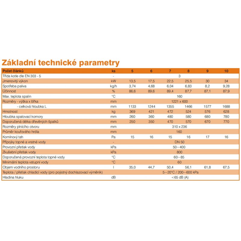 - teplota spalin při jmenovitém výkonu je 160 °C