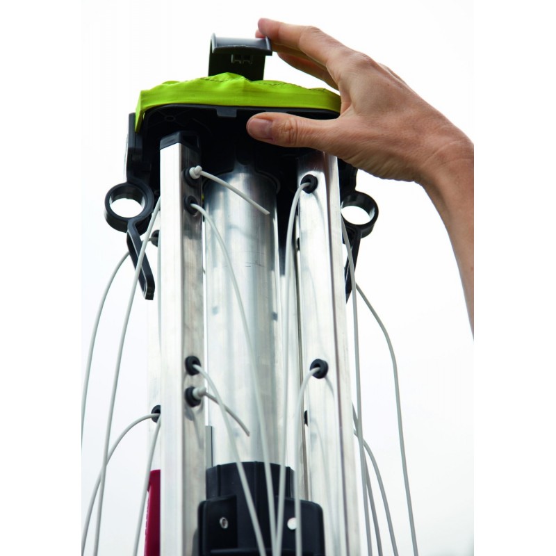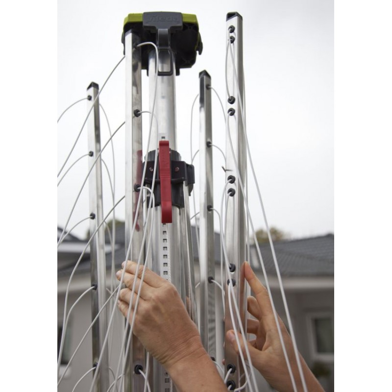 • Vždy čisté šňůry - integrovaný obal uvnitř stojné tyče pro jednoduché použití po složení sušáku zamezí znečištění šňůr polétavým prachem, pylem apod.