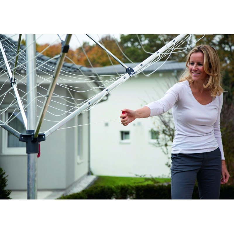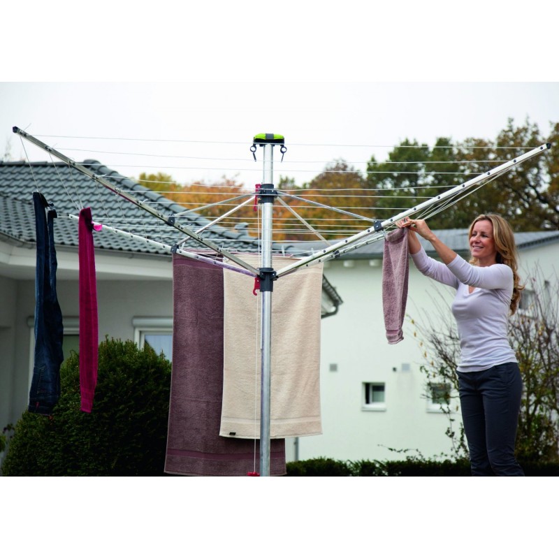• Flexibilní venkovní sušák na prádlo - Hliníkový 4 ramenný rotační sušák s nastavitelnou výškou.• Háčky pro zavěšení ramínek na všech 4 ramenech.