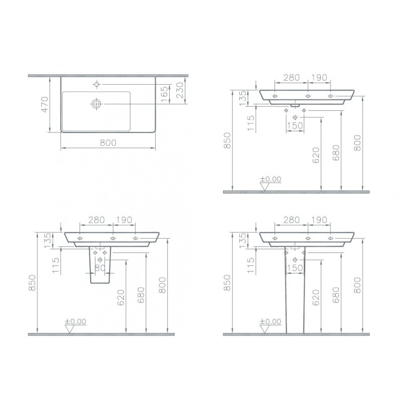 VITRA T4 umyvadlo asymetrické s otvorem 80 x 47 cm, bílé 4453-003-0001Rozměr: 80 x 47 cm