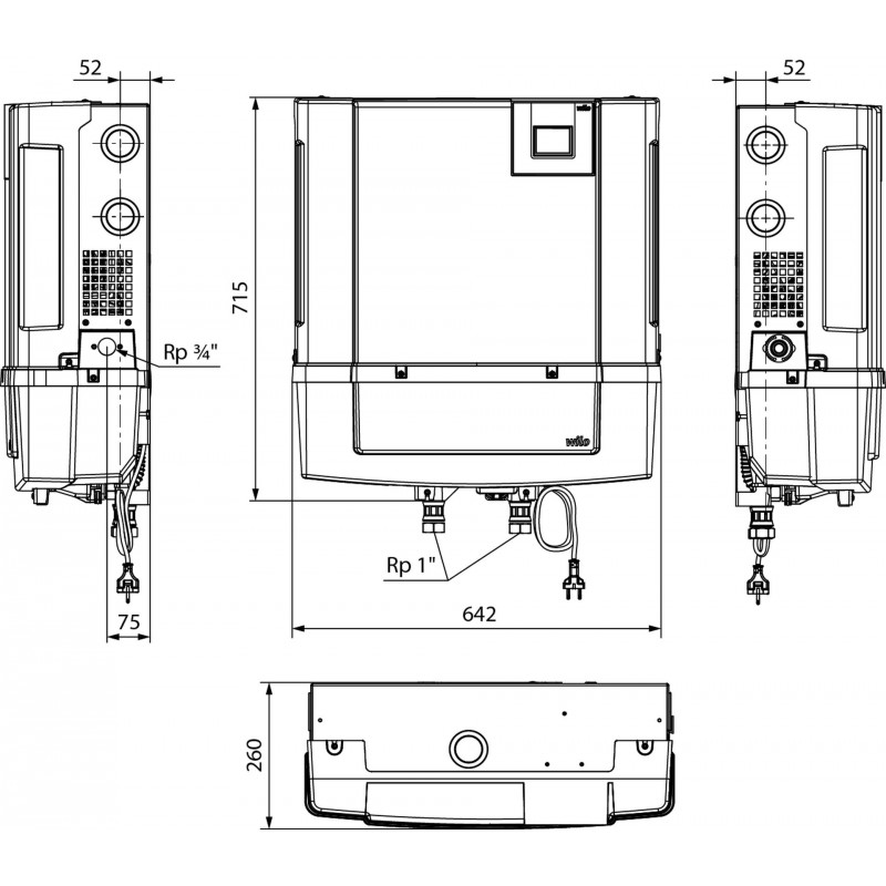 Zařízení je vybaveno moderním dotykovým LCD displejem pro intuitivní ovládání. Systém nabízí řadu chytrých funkcí, jako je ochrana proti chodu nasucho, automatické samoochranné rutiny, diagnostika a monitoring provozu. Díky kompaktním rozměrům a standardizovaným přípojkám je instalace rychlá, jednoduchá a vhodná i pro rekonstrukce.