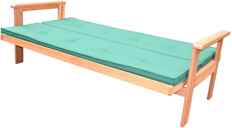 - Lavice je vybavena velmi pohodlnou poduškou v zelené barvě, díky tomu bude vaše posezení na zahradě, terase či balkóně ještě příjemnější.